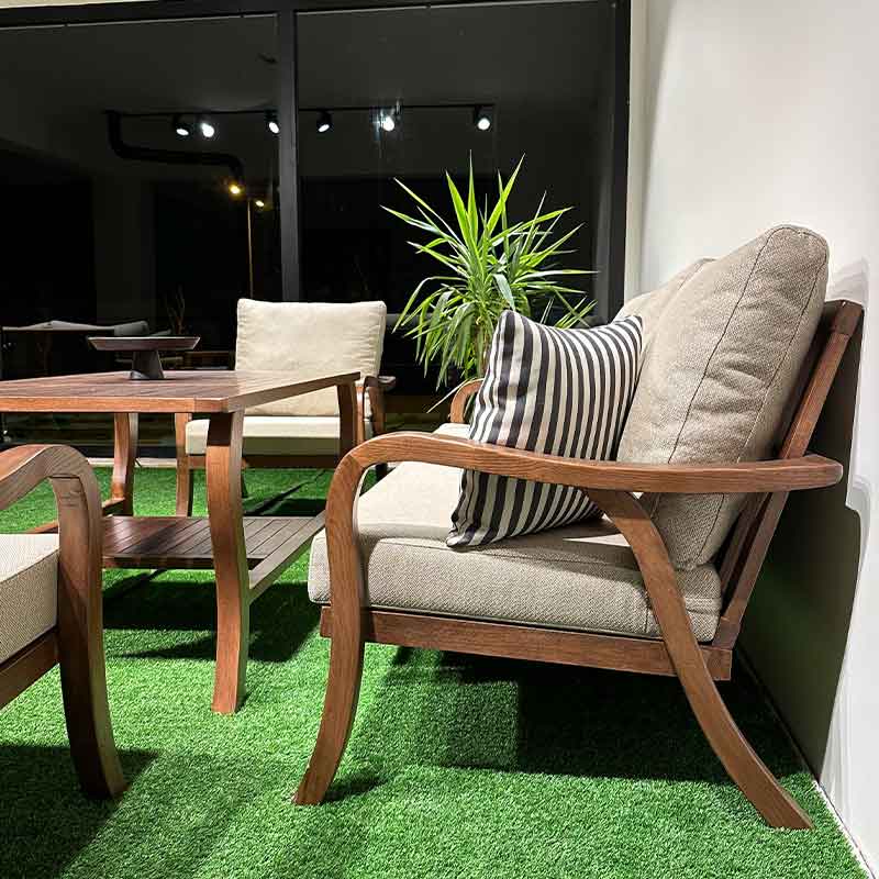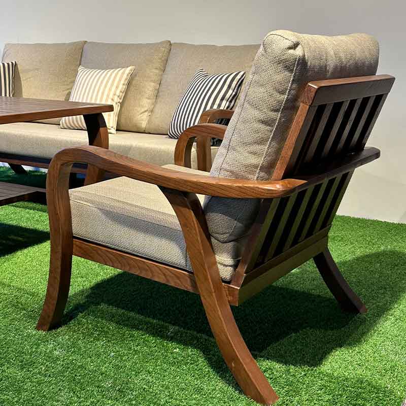 Leo Ceviz Vernikli Kestane Ahşap Oturma Grubu. Hafif kolay taşınabilir, 1.sınıf kestane ağacı, Yıkanabilir ve silinebilir kumaş, 1 adet üçlü oturum 2 adet tekli oturum 1 adet orta sehpa, Oturum minderi dahildir