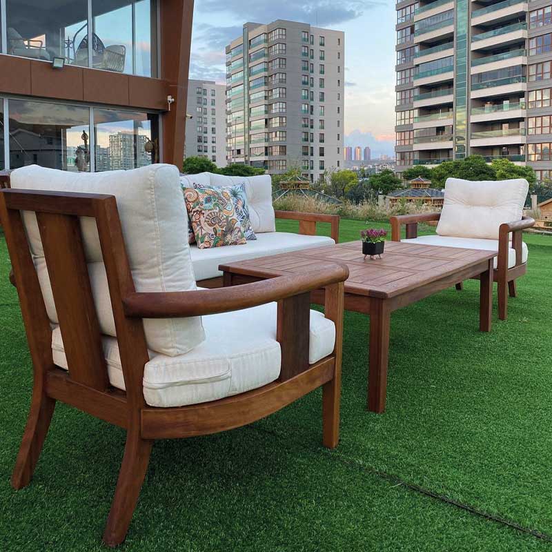 Hafif kolay taşınabilir, 1.sınıf iroko ağacı, Yıkanabilir ve silinebilir kumaş, 1 adet üçlü oturum 2 adet tekli oturum 1 adet orta sehpa, Oturum minderi dahildir